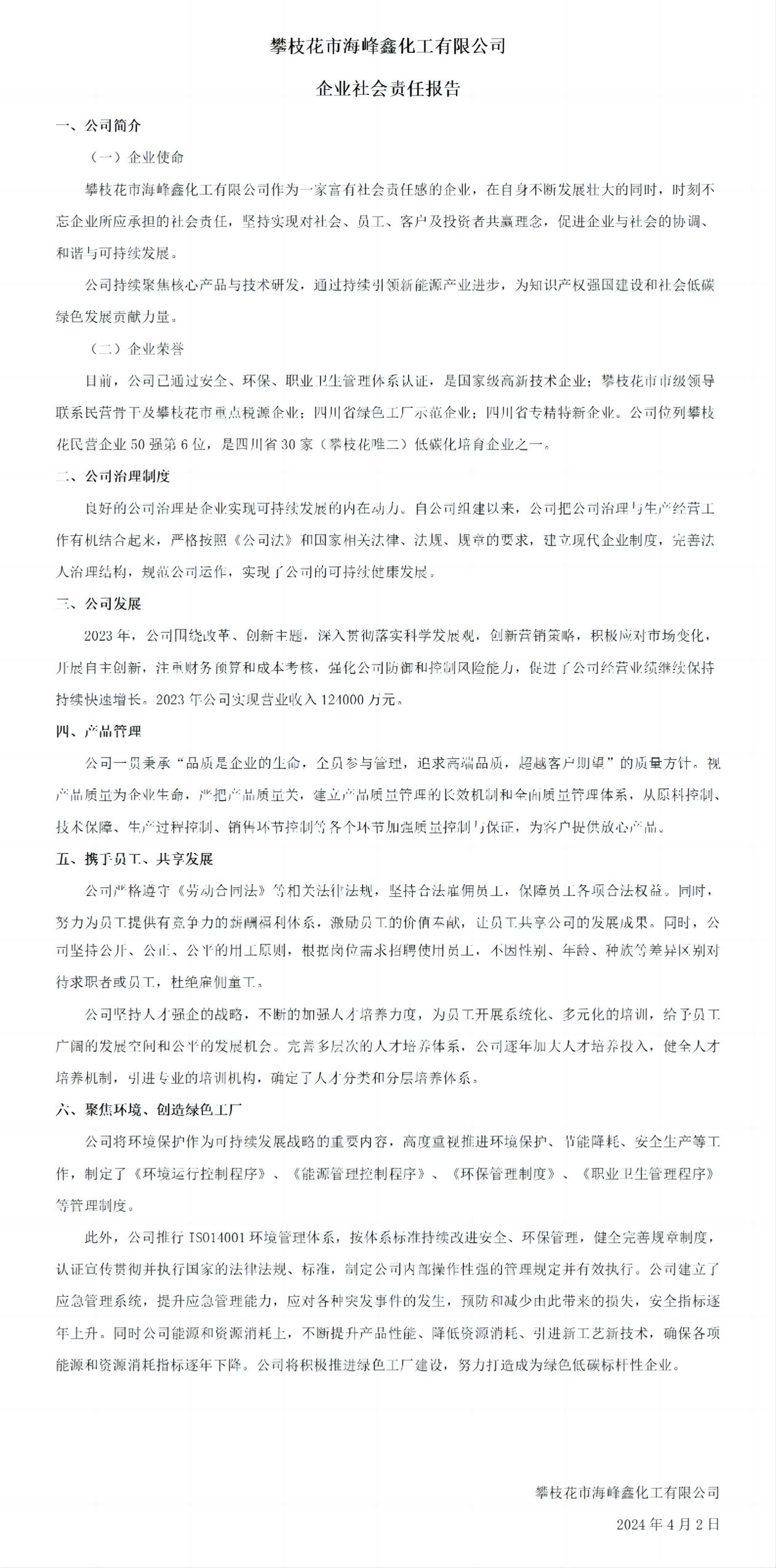 攀枝花市海峰鑫化工有限公司社會責(zé)任報告