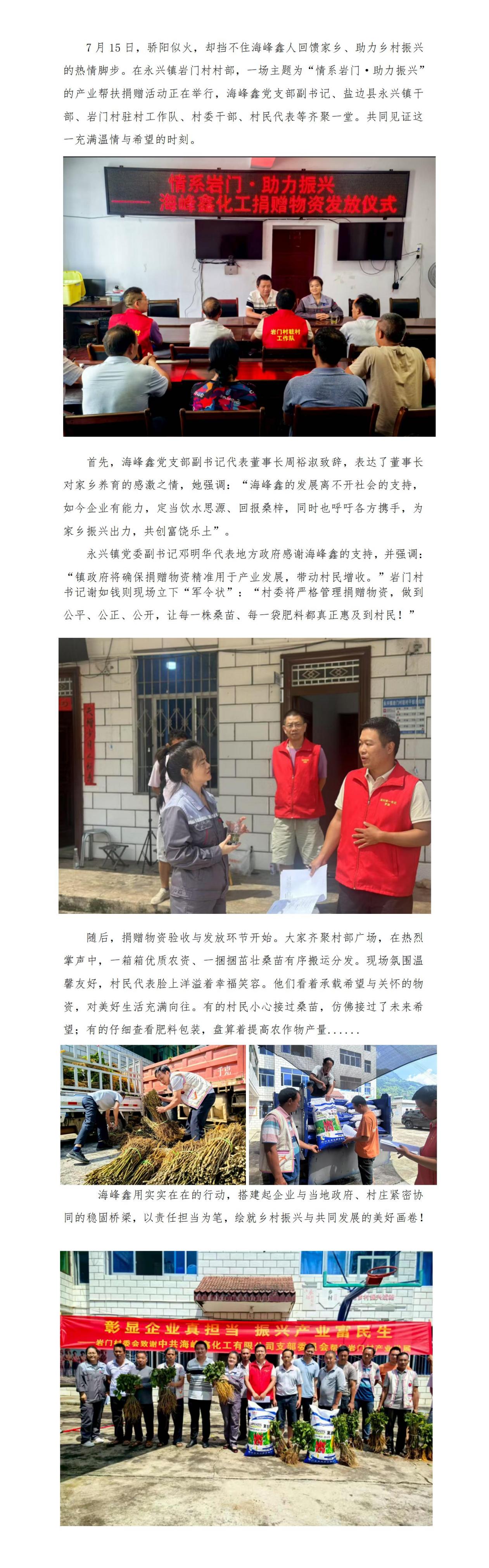 【黨建】彰顯企業(yè)真擔當 振興產(chǎn)業(yè)富民生——海峰鑫黨支部開展產(chǎn)業(yè)幫扶捐贈活動